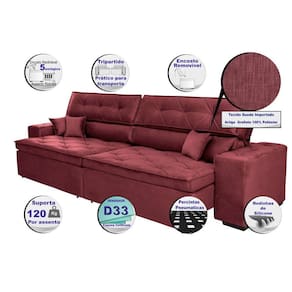 Sofá Austin 2,22m Retrátil, Reclinável com Molas no Assento e Almofadas, Tecido Suede Vinho