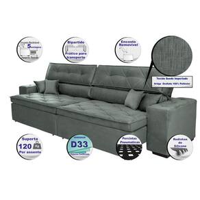 Sofá Austin 2,42m Retrátil, Reclinável com Molas no Assento e Almofadas, Tecido Suede - Grafite
