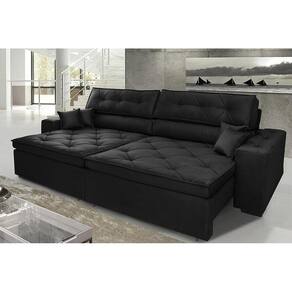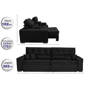 Sofá Austin 2,62m Retrátil, Reclinável com Molas no Assento e Almofadas, Tecido Suede Preto - Preto