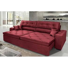 Sofá Austin 3,02m Retrátil, Reclinável Com Molas No Assento E Almofadas, Tecido Suede Vinho
