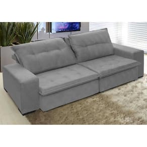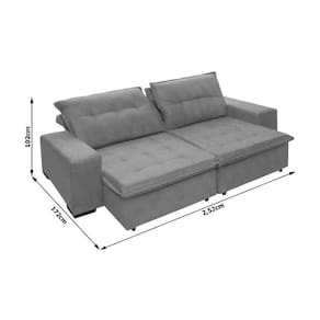-Encosto Reclinável com 5 posições, almofadas fixas compostas de 70% fibra siliconada e 30% flocos de espuma. Percintas elásticas e manta siliconada para maior conforto.