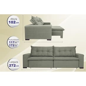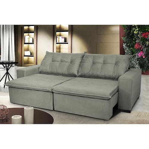 Sofá Austrália 2,72 Mts Retrátil, Reclinável Com Molas E Pillow No Assento Tecido Suede Cinza