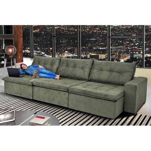 Sofá Austrália 3,82 Mts Retrátil, Reclinável Com Molas e Pillow no Assento Tecido Suede - Cama InBox - Cinza