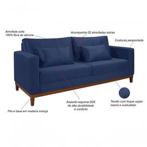 Cor: Azul Marinho | Altura: 98 | Peso do Produto: 40 | Garantia do Fabricante: 3 | Tonalidade: Azul | Cômodo Indicado: Salas | Produto: Sofá | Tipo de Tecido: Veludo | Quantidade de Lugares: 2 | Complexidade de Montagem: Baixa: pode ser montado por uma pessoa leiga | Conservação e Manutenção do Produto: Não utilizar produtos químicos | Largura: 170 | Tipo do Sofá: Retrátil | Capacidade de Peso: 300 | Tempo Estimado de Montagem: 5 | Comprimento: 170 | Assento Retrátil: Não Retrátil | Tipo de produto: Sofá | Fabricante: Império Estofados | Peso: 40 | Quantidade de caixas de embalagem: 1 | Profundidade: 85 | Materiais da estrutura: Madeira Cor: Veludo Azul Marinho 171