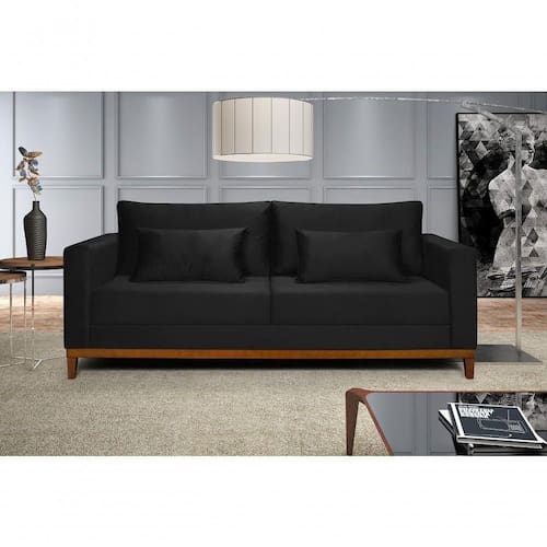 Conjunto Sofá Bahamas 1,70m. O modelo Bahamas é um sofá fixo do estilo living, ele exibe extrema elegância e sofisticação. Um verdadeiro sonho de consumo que encanta os olhares e ganha o coração de muita gente. O assento é na espuma D26 soft com molas, encosto na espuma D23, para se tornar ainda mais elegante e confortável possui almofadas que são e pés em madeira maciça .