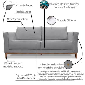 Sofa Balli 2 Lugares 170cm Pes Madeira Linho 221 Cinza Ezz Cinza