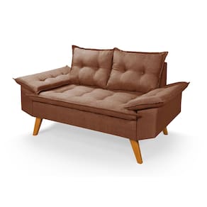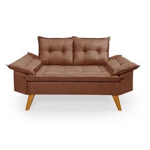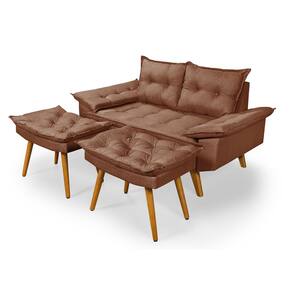 Sofá Bariloche 2 Lugares Com Duas Banquetas em Linho - Marrom