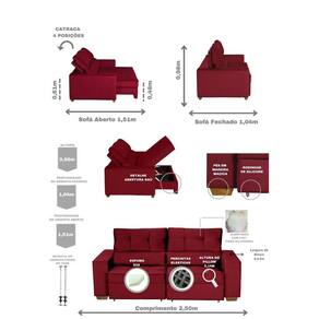 Dimensoes: Altura: 98 cm Largura: 104 cm Profundidade: 250 cm Peso: 111,2 kg