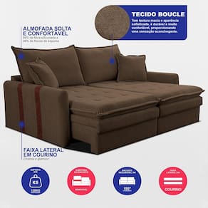 Sofá Baú Sem Caixa 2,00m Retrátil Bonnie Boucle Marrom Versatilidade e Sofisticação para sua sala!