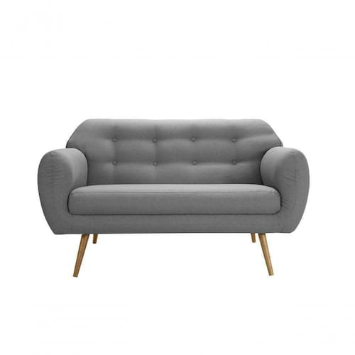Sofá fabricado em madeira de eucalipto, revestido com espuma D28 e tecido, detalhes de botonê em seu encosto. Pés em madeira tauari. Sofá com estilo retrô, charmoso, elegante e compacto, fará toda diferença no ambiente em que for colocado.