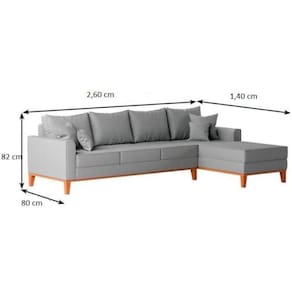 DESIGN MODERNO: Sofá com chaise direito em linho, apresentando linhas contemporâneas e base elegante em madeira natural DIMENSÕES GENEROSAS: Medidas amplas de 2,60m de largura por 1,40m de profundidade, ideal para acomodar 4 pessoas confortavelmente ESTRUTURA ROBUSTA: Base e pés em madeira maciça que garantem estabilidade e durabilidade ao móvel CONFORTO PREMIUM: Almofadas soltas no encosto e assento proporcionando maior comodidade e facilidade na manutenção VERSATILIDADE: Chaise reversível que permite adaptação em diferentes layouts, com acabamento em linho de alta qualidade