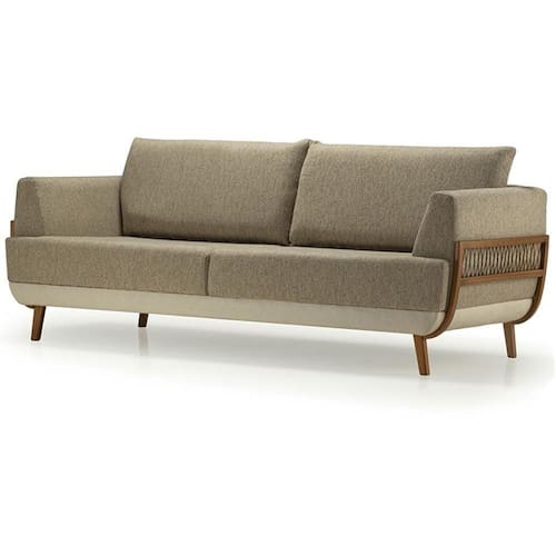 Sofá Blendi Ozki 200 Cm Madeira Eucalipto Cedro Tecido Composê Cinza E Bege Corda Redonda Canela