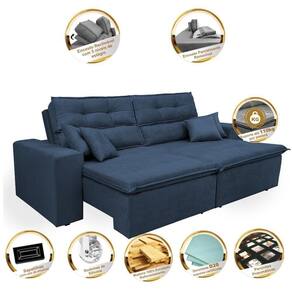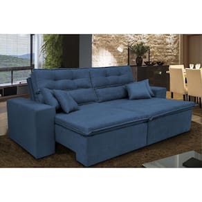 Informações importantes: - Os objetos que ambientam as fotos não acompanham o produto. - Os tecidos podem sofrer alterações de tonalidades dependendo do lote de produção. - Verifique as dimensões do produto e certifique-se que o percurso que ele fará até o local de uso permite sua passagem. - Nos responsabilizamos pela entrega dos produtos adquiridos até a porta de entrada ou portaria do endereço indicado. Quaisquer despesas ou dano no transporte até o local de uso ficam a cargo do cliente. "As transportadoras não sobem estadas ou elevadores". É sofá de canto: Não | É sofá-cama: Não | Encosto Reclinavel: Sim | Assento Retratil: Sim | Fabricante: Cama inBox | Quantidade de Lugares: 3 | Altura: 100 | Largura: 182 | Profundidade: 110 | Desenho do tecido: Liso | Acessórios incluídos: Almofadas | Cor principal: Azul Marinho | Tonalidade: Azul | Cor: Azul Marinho | Produto: Sofá | Comodo indicado: Salas | Estilo: Moderno | Complexidade de Montagem: Fácil de montar | Tempo Estimado de Montagem: 20 Minutos | Material do Assento: Madeira Reflorestada, Molas, Espuma, Tecido Liso | Custo da Manutenção: Baixo | Conservação e Manutenção do Produto: Para maior durabilidade, recomendamos que a limpeza dos estofados com revestimento em tecido, seja feito com aspirador de pó em baixa rotação ou escova com cerdas macias para a eliminação de poeira e pano úmido em água. Não utilizar agentes químicos! | Condição do item: Novo | É kit: Não | Peso do Produto: 80 | Estado de Origem: PR | Modelo Via: Retrátil/Reclinável | Material para Filtro: Tecido | Quantidade de Lugares Via: 3 Lugares