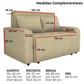 Sofa Cama 2 Lugares 138 Cm Amora Linho Vancouver Milani Store Palha