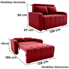Produto: Sofá cama | Cor: Multicolorido | Tonalidade: Multicolorido | Cômodo Indicado: Salas | Quantidade de lugares: 2 Cor: Vermelho