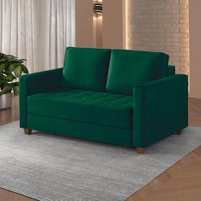 Sofá Cama Marcelle 2 Lugares 150 Casal Veludo Paris Pés De Madeira Talento Móveis Verde Com Castanho Disponível no modelo casal e solteiro, o sofá cama Marcelle atende a todos os perfis de usuário. Os Pés de madeira dão a sustentação e confiança necessária, além de almofadas soltas para facilitar no seu manuseio.