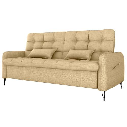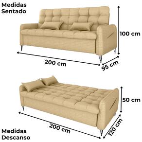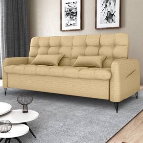 Estofado 2 em 1 para maior praticidade, conforto e aquele toque moderno para sua sala! Sofá cama Pillar 2 lugares, estrutura em madeira Eucalipto de reflorestamento e percintas elásticas para maior resistência, assento e encosto com espuma D20 soft e braças em espuma D23, revestidos em tecido Vancouver Linen (Linho misto: resistente, levemente texturizado e de visual contemporâneo, composição com poliester). Sistema retrátil com catraca que permite abertura para função cama. Pés em ferro e bolsos laterais (35x37cm) para armazenamento de objetos. Suporta até 110kg por assento e acompanha 2 almofadas decorativas. Este móvel chegará em sua casa separado em 01 volume.