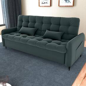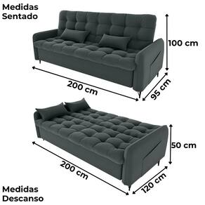 Estofado 2 em 1 para mais praticidade, conforto e um toque moderno na sua sala! O sofá cama Pillar 2 lugares tem estrutura em madeira de eucalipto de reflorestamento e percintas elásticas para maior resistência. Assento e encosto com espuma D20 soft e braças em espuma D23, revestidos com tecido Veludo (macio, com toque suave e acabamento sofisticado). Sistema retrátil com catraca que permite a abertura para a função cama. Pés em ferro e bolsos laterais (35x37 cm) para guardar o que você quiser. Suporta até 110 kg por assento. Este móvel chegará em sua casa separado em 01 volume.