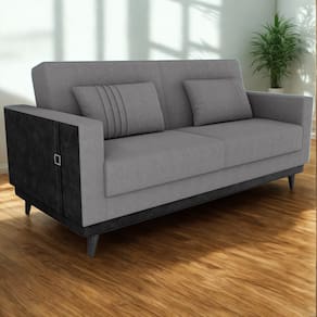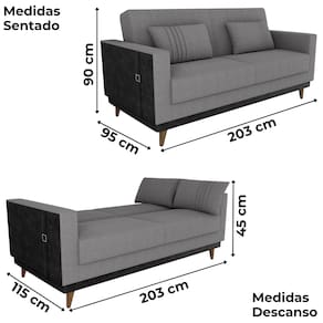 Sofa Cama 2 Lugares 203 cm Boucle Cinza Corino Preto Milani Store