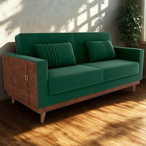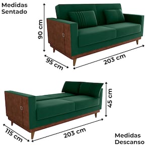 Design refinado, conforto absoluto e acabamento impecável: Sofá Cama Esther transforma qualquer ambiente. Estrutura em Madeira de Eucalipto de reflorestamento, assentos com percintas elásticas e molas espirais, enquanto as espumas D23 (nos assentos e braças) e D20 (no encosto) garantem a maciez. Revestido em tecido Veludo Maserati na parte frontal (veludo sintético com toque macio, texturizado e aveludado) e laterais e rodapé em Frankfurt Montana (Corino, um material sintético que imita couro com aparência suave e de fácil limpeza). O sistema de abertura é tipo catraca, permitindo transformar o sofá em cama de forma simples e prática. Suporta até 110kg por assento e acompanha duas almofadas decorativas (55x35cm). Os pés também em madeira, garantindo durabilidade. Este móvel chegará em sua casa separado em 01 volume.