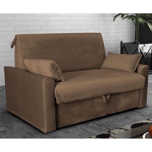 Sofá-Cama 2 Lugares Matrix Cristal com Baú e Revestimento em Tecido Veludo - Marrom