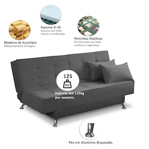 Sofá Diana, versátil que se transforma em cama confortável, oferecendo praticidade e funcionalidade em espaços diversos. Ideal para otimizar ambientes pequenos sem abrir mão do conforto para dormir.