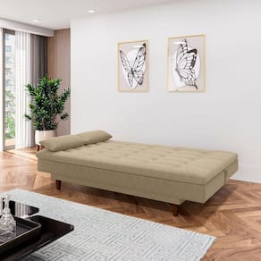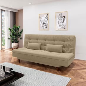 Estrutura em madeira maciça 100% reflorestada. Acompanha Almofadas extras: 02 Almofada do assento: Fixa Almofada do encosto: Fixa Altura do assento até o chão: 45 cm Altura do Encosto: 88 cm Altura dos Pés: 12 cm Ambiente Principal: Sala de Estar Complexidade da Montagem: Baixa: pode ser montado por uma pessoa sozinha Cor: Bege Cor do Produto: Bege Densidade do Assento: D-26 Densidade do Encosto: D-26 Enchimento do Assento: Espuma Enchimento do Encosto: Espuma Estilo de Braço: Sem Braços Firmeza do Assento: Macio Informações Complementares: Percintas pneus, pés cromado Itens Inclusos: 1 Sofá Cama Linha ou Coleção: Linha Material dos Pés: Madeira eucalipto Medida como Cama (A x L x P): 43x125x190 Modelo: Sofanete Necessita Montagem: Sim Origem do Produto: Nacional Peso: 44 kg Pet Friendly: Não Possui Baú: Não Possui Percintas Elásticas: Sim Possui Pés: 04 Possui Rodízio: Não Reclinável: Sim Recomendações de Uso, Manutenção e Limpeza: Não limpar com álcool ou qualquer outro produto quimico. Utilisar somente pano seco. Revestimento do Assento: Suede Revestimento do Encosto: Espuma D26 e tecido Sued Sistema de Montagem: Rosquear os pés Tecido Predominante: Suede Tipo de Assento: Fixo Tipo de Encosto: Regulável Tipo de Mola: Molas Bonnel Marca: Nabas Estofados Ean: 7909903444566