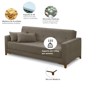 Sofá Aurora, que se converte em cama com facilidade, ideal para acomodar visitas inesperadas. Combina conforto diurno e noturno em um único móvel versátil, perfeito para ambientes compactos.