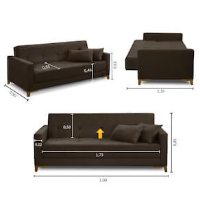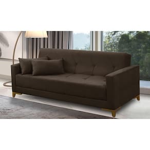 Sofá Aurora, que se converte em cama com facilidade, ideal para acomodar visitas inesperadas. Combina conforto diurno e noturno em um único móvel versátil, perfeito para ambientes compactos.