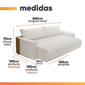 MODELO: Sofá Cama 3 Lugares 2,60m Orgânico Belissimo