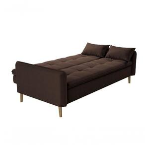 Seu design elegante é complementado por 4 pés de madeira e almofadas decorativas, sendo ideal para salas de estar, escritórios, flats ou quartos de hóspedes.