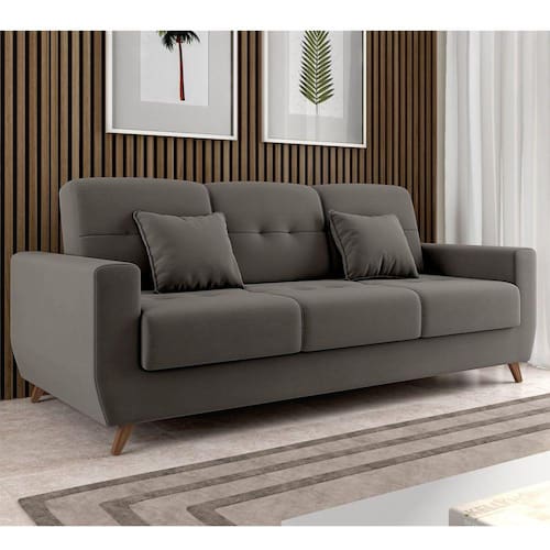 Sistema de Abertura: Para abertura, basta manusear o encosto inclinando-o para frente e voltar para trás deitando totalmente o encosto. Para a posição intermediária, retorne o encosto para cima até que faça um estalo, então o solte e terá a posição de leitura. Apresentação do Produto: O sofá-cama Pâmarroma vem de uma linhagem de modelos que são reclinados por sistemas de catraca de três pinos, onde se utiliza no mesmo produto três posições diferentes: sentado como sofá, leitura com reclino de meio corpo e deitado onde se desfruta com o conforto de cama necessário para toda a noite. Este modelo oferece ainda a praticidade e a multifuncionalidade de um baú abaixo do assento. Para abri-lo levante o assento para cima. Acompanha Almofadas extras: 02 Almofada do assento: Fixa Almofada do encosto: Fixa Altura do assento até o chão: 25 Altura do Encosto: 45 Altura dos Pés: 6 Ambiente Principal: Sala de Estar Complexidade da Montagem: Cor: Cinza Cor do Produto: Cinza Densidade do Assento: D-26 Densidade do Encosto: D-26 Enchimento do Assento: Espuma Enchimento do Braço: Espuma D-26 Enchimento do Encosto: Espuma Estilo de Braço: Braços Redondos Firmeza do Assento: Médio Informações Complementares: 100 KG por assento Itens Inclusos: 1 Sofá Cara, Kit Pés e Manual de Montagem Largura do Sofá Maior: Linha ou Coleção: Manual de Especificação Técnica: Manual de Montagem e Instalação: Material dos Pés: Madeira Medida como Cama (A x L x P): 50x207x114cm Modelo: Somente Reclinável Necessita Montagem: Não Origem do Produto: Nacional Peso: 64 Pet Friendly: Não Possui Baú: Sim Possui Percintas Elásticas: Sim Possui Pés: 04 Possui Rodízio: Não Profundidade Quando Estendido: Reclinável: Sim Recomendações de Uso, Manutenção e Limpeza: Para maior durabilidade, recomendamos que a limpeza dos estofados com revestimento em tecido, seja feito com aspirador de pó em baixa rotação ou escova com cerdas Revestimento do Assento: Veludo Revestimento do Braço: Veludo Revestimento do Encosto: Veludo Rodízio com Trava: Não Sistema de Montagem: Tecido Predominante: Veludo Tipo de Assento: Fixo Tipo de Encosto: Fixo Tipo de Mola: Não Possui