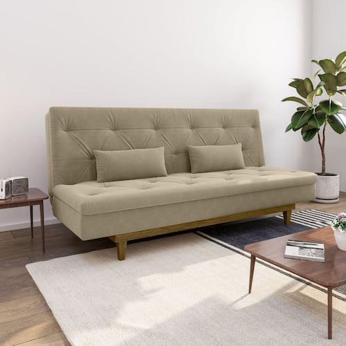 Sofá Cama 3 Lugares em Suede Tokio Yescasa Castor/Castanho - Bege