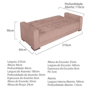Sofá Cama 3 Lugares Linho Ipanema Rose - Rosa