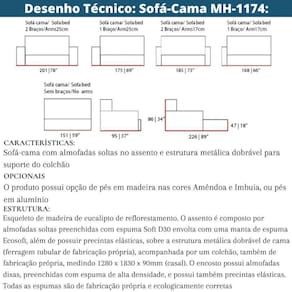 Produto: Sofá-Cama 3 Lugares MH-1174 Herval 201 cm Colchão Casal Veludo Preto C Pé Madeira Amêndoa | Cor: Preto | Garantia (via): 6 | Materiais: Tecido, Espuma, Madeira | Estilo de Decoração: Moderno | Tonalidade: Preto | Quantidade de Lugares: 03 | Linha: MH-1174 | Marca: Herval | Peso Suportado (kg): 120.00 | Tipo de Base: Fixa | Atributos: Versátil, Resistente, Confortável | Área de uso: Interna | Garantia (tempo): 6 meses | Garantia (descritivo): Garantia contra defeitos de fabricação de 06 meses. Consulte as nossas políticas. | Peso (kg): 60.00 | Medidas: Largura (cm): 201.00 | Medidas: Profundidade (cm): 95.00 | Medidas: Altura (cm): 86.00 | Entregue Montado?: Não | Possui Manual de Montagem?: Acompanha o Produto | Possui Braços?: Sim | Origem do Produto: Nacional | Conservação e Manutenção: Limpeza com pano seco, escova com cerdas macias ou aspirador. | Tipo de Assento: Retrátil | Tipo de Encosto: Fixo | Número de Lugares: 3 Lugares | Tipo de Almofada (Assento): Solta | Madeira Sustentável?: Sim | Tipo de Cama: Multifuncional | Tamanho de Cama: Casal | Estado de Origem: RS | Conteúdo da Embalagem: 1 Sofá | Height: 86 CENTIMETERS | Width: 201 CENTIMETERS | SideToSide: 95 CENTIMETERS
