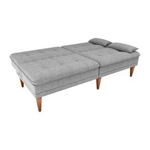 Os 6 pés de madeira garantem estabilidade e charme ao visual, enquanto as cintas elásticas reforçam a sustentação, tornando o sofá-cama ainda mais confortável e resistente.