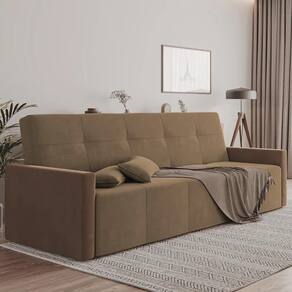 Seu acabamento em veludo marrom e estrutura retrátil e reclinável o tornam perfeito para salas de estar, quartos ou ambientes multifuncionais.