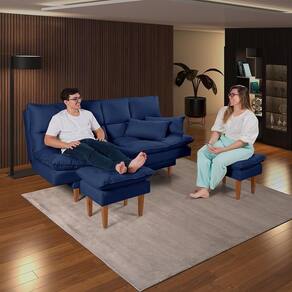 Para ficar ainda mais aconchegante ele acompanha duas banquetas que serve para esticar as pernas no seu momento de descanso, ou quando chegar visita tem onde sentar. A baqueta é feita de Madeira Maciça e o assento é de fibra siliconada.