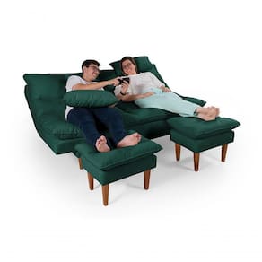 Para ficar ainda mais aconchegante ele acompanha duas banquetas que serve para esticar as pernas no seu momento de descanso, ou quando chegar visita tem onde sentar. A baqueta é feita de Madeira Maciça e o assento é de fibra siliconada.
