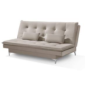 Sofá Cama Bangkok Pés Cromados Tecido Alta Qualidade Veludo Cor:bege