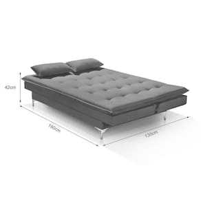 Espuma de alto conforto D-23Tecido em veludoReclinável em 2 posiçõesEstrutura em madeiraPés de ferro cromadoBi-cama com montagem simples por rosqueamentoAltura: 42 cmLargura: 130 cmProfundidade: 190 cm