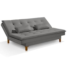 Sofá Cama Bangkok Reclinável Em Madeira Resistente Veludo Cor cinza - Blush