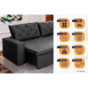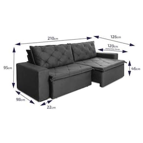 Sofá Cama Bangkok Sem Caixa 2,10m Retrátil e Reclinável Com Molas Velut Cinza - King House