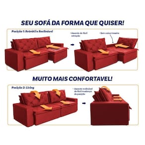 E não para por aí a sua estrutura interna é composto de madeira 100% de reflorestamento tornando-o resistente, e seu assento conta com espuma D33 e molas espirais, transformando seu sofá em um verdadeiro aconchego para assistir seu filme favorito, tirar aquela soneca que você aguarda após um dia agitado e estressante, ou dar aquela maratonada na série que você adiava tanto tempo por não ter encontrado o sofá certo, até agora!