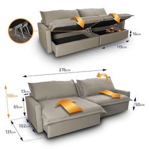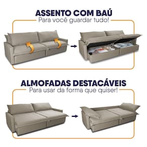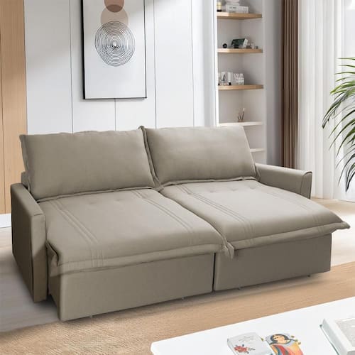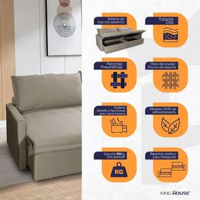 Ele possui encosto reclinável em cinco posições, proporcionando-lhe mais conforto na hora do descanso. Não para por aí: seu assento retrátil conta com espuma D33 e molas espirais, transformando seu sofá em uma verdadeira cama para assistir seu filme preferido.