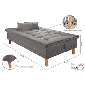 Sofá 3 em 1, ou seja, pode ser utilizado como sofá, chaise e até mesmo como cama. Esse sofá possui pés em madeira maciça, espumas de alto conforto com a densidade D26. Persintas elásticas e molas bonel. Tecido super macio com costura dupla. Esse produto pode ser utilizado em diversos ambientes. Um dos seus diferenciais, é que na posição sofá, por se tratar de um sofá cama, acomoda confortavelmente seus ocupantes devido a altura do assento até o chão. Produto Montado: Sim Almofada do assento: Fixa Almofada do encosto: Fixa Altura do assento até o chão: 51.0000 Altura do Encosto: 48 cm Altura dos Pés: 18 cm Ambiente Principal: Sala de Estar codigo_ean: 7898603517789 Complexidade da Montagem: Baixa: pode ser montado por uma pessoa sozinha Cor: Cinza Cor do Produto: Cinza Densidade do Assento: D-26 Densidade do Encosto: D-26 Enchimento do Assento: Espuma Enchimento do Encosto: Espuma Estilo de Braço: Sem Braços Itens Inclusos: 1 Sofá, 2 Almofadas, 4 Pés e Manual de instruções Linha ou Coleção: LINHA Manual de Especificação Técnica: https://cdn2.madeiramadeira.com.br/atributo/imperio-estofados/441637-garantia-imp-rio-estofados.pdf Manual de Montagem e Instalação: https://cdn2.madeiramadeira.com.br/atributo/imperio-estofados/441636-manual-de-montagem-versatil-e-pr-tico-madero.jpg Material dos Pés: Madeira Maciça Modelo: Somente Reclinável Necessita Montagem: Sim Nível de Conforto: Macio Origem do Produto: Nacional Possui Baú: Não Possui Rodízio: Não Profundidade Quando Estendido: 125 cm Quantidade de Itens: 1 Reclinável: Sim Recomendações de Uso, Manutenção e Limpeza: Não utilizar produtos químicos, limpar apenas com pano levemente umedecido com água. Revestimento do Assento: Veludo liso Revestimento do Encosto: Veludo liso Sistema de Montagem: Somente rosquear os pés Tecido Predominante: Veludo Tipo de Mola: Molas Bonnel Ean: 7898603517789