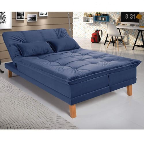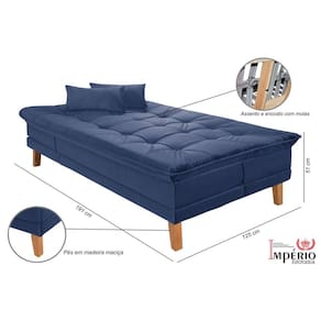 Sofá 3 em 1, ou seja, pode ser utilizado como sofá, chaise e até mesmo como cama. Esse sofá possui pés em madeira maciça, espumas de alto conforto com a densidade D26. Persintas elásticas e molas bonel. Tecido super macio com costura dupla. Esse produto pode ser utilizado em diversos ambientes. Um dos seus diferenciais, é que na posição sofá, por se tratar de um sofá cama, acomoda confortavelmente seus ocupantes devido a altura do assento até o chão. Acompanha Almofadas extras: 02 Almofada do assento: Fixa Almofada do encosto: Fixa Altura: 99 cm Altura do assento até o chão: 51 cm Altura do Encosto: 48 cm Altura dos Pés: 18 cm Ambiente Principal: Sala de Estar calculo: unidade Complexidade da Montagem: Baixa: pode ser montado por uma pessoa sozinha Cr: Azul Marinho Cr do Produto: Azul marinho Densidade do Encosto: D-26 Enchimento do Assento: Espuma Enchimento do Encosto: Espuma Estilo: Moderno Estilo de Braço: Sem Braços Firmeza do Assento: Macio Itens Inclusos: 1 Sofá , 2 Almofadas, 4 Pés e Manual de Instruções. Largura: 191 cm Linha ou Coleção: Manual de Especificação Técnica: https://cdn2.madeiramadeira.com.br/atributo/imperio-estofados/441637-garantia-imp-rio-estofados.pdf Manual de Montagem e Instalação: https://cdn2.madeiramadeira.com.br/atributo/imperio-estofados/441636-manual-de-montagem-versatil-e-pr-tico-madero.jpg Material da Estrutura: Madeira maciça Material dos Pés: Madeira maciça Medida como Cama (A x L x P): 51cm x 191cm x 125cm Modelo: Somente Reclinável Necessita Montagem: Sim Origem do Produto: Nacional Peso: 58,5 kg Possui Apoio para Braços: Não Possui Baú: Não Possui Percintas Elásticas: Sim Possui Pés: 04 Possui Rodízio: Não Profundidade: 117 cm Profundidade Quando Estendido: 125 cm Quantidade de Lugares: 03 Reclinável: Sim Recomendações de Uso, Manutenção e Limpeza: Não utilizar produtos químicos, limpar apenas com pano levemente umedecido com água. Revestimento do Assento: Veludo liso Revestimento do Encosto: Veludo liso Rodízio com Trava: Não Sistema de Montagem: Somente rosquear os pés status-cadastro: Aprovado Suporta Até (kg): 240 kg Tamanho: Tecido Predominante: Veludo Tipo de Assento: Fixo Tipo de Encosto: Regulável