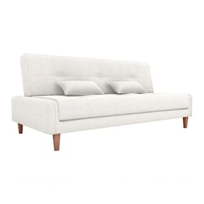 Sofá Cama Blanca possui espuma: D23 assento e braças, D20 encosto e mola espiral , madeira: eucalipto de reflorestamento, percinta: cinta elástica, composição dos pés: 4 pés de madeira, fixação: grampos e parafusos, abertura: catraca 3 posições (SENTADO, LEITURA E DESCANSO, composição da embalagem: malha, plástico e papelão, garantia de fábrica de 90 dias Peso do Produto: 41 kg;