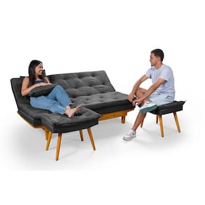 Sofá Cama Caribe Duas Banquetas Linho Essencial Estofados Itens Inclusos: 1 Sofá Cama 2 banquetas 4 Pés 2 almofadas
