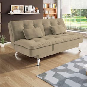 que tal o sofá-cama amanda?dono de um visual que promete levar sofisticação e aconchego para a sua casa, o sofá-cama amanda vai renovar os seus dias de descanso, além de ser uma peça digna de elogios em qualquer decoração. por dentro, ele tem madeira de reflorestamento na composição, uma ótima característica para o uso diário. já por fora, o suede faz com que todo mundo tenha vontade de ficar nele sem hora para sair, assim como aprimora os seus momentos de lazer em frente à televisão. ah, para fechar com chave de ouro, ele se transforma rapidamente de sofá para cama para se adaptar à sua rotina e necessidades. muitos benefícios para um lar que merece ser igualmente incrível ;)